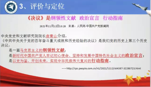 此课备课会对会议精神的解读和教学工作的研讨为我校思想政治教育提供了重要的参考。备课会加深了思政教师对党的十九届六中全会精神的领悟,为推进党的十九届六中全会精神进教材、进课堂、进头脑提供了重要的参考。会后,思政教研室六位教师就备课会内容展开学习和讨论。