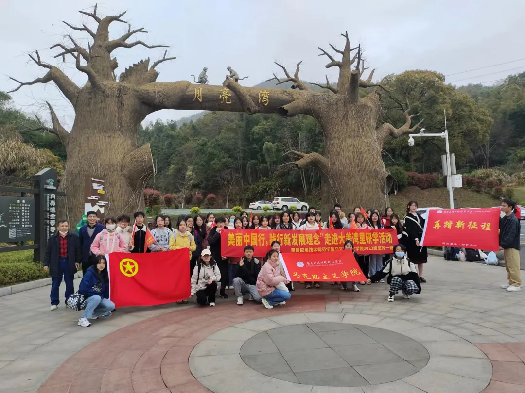 红船荡漾,星火燎原,红色研学正当时。为贯彻“弘扬伟大建党精神,自信自强,守正创新”的二十大理念,学习和践行“踔厉奋发,勇毅前行”的二十大精神,3月25日,beat365在线体育官网登录入口红色班级——“砥砺前行班”思政一班46人在班主任卢林保老师的带领下前往大美湾里举办了以“美丽中国行,践行‘新发展理念’”为主题的红色研学活动,为提升此次研学活动的专业性,特别邀请江西中医药大学周世新教授和省内知名企业家夏雷先生参与指导。在此次活动中,同学们深入了解“德技兼备,知行合一”的校训,践行“不忘初心、牢记使命”的革命理念,发扬革命精神,传承红色基因,在未来的日子里艰苦奋自强不息。