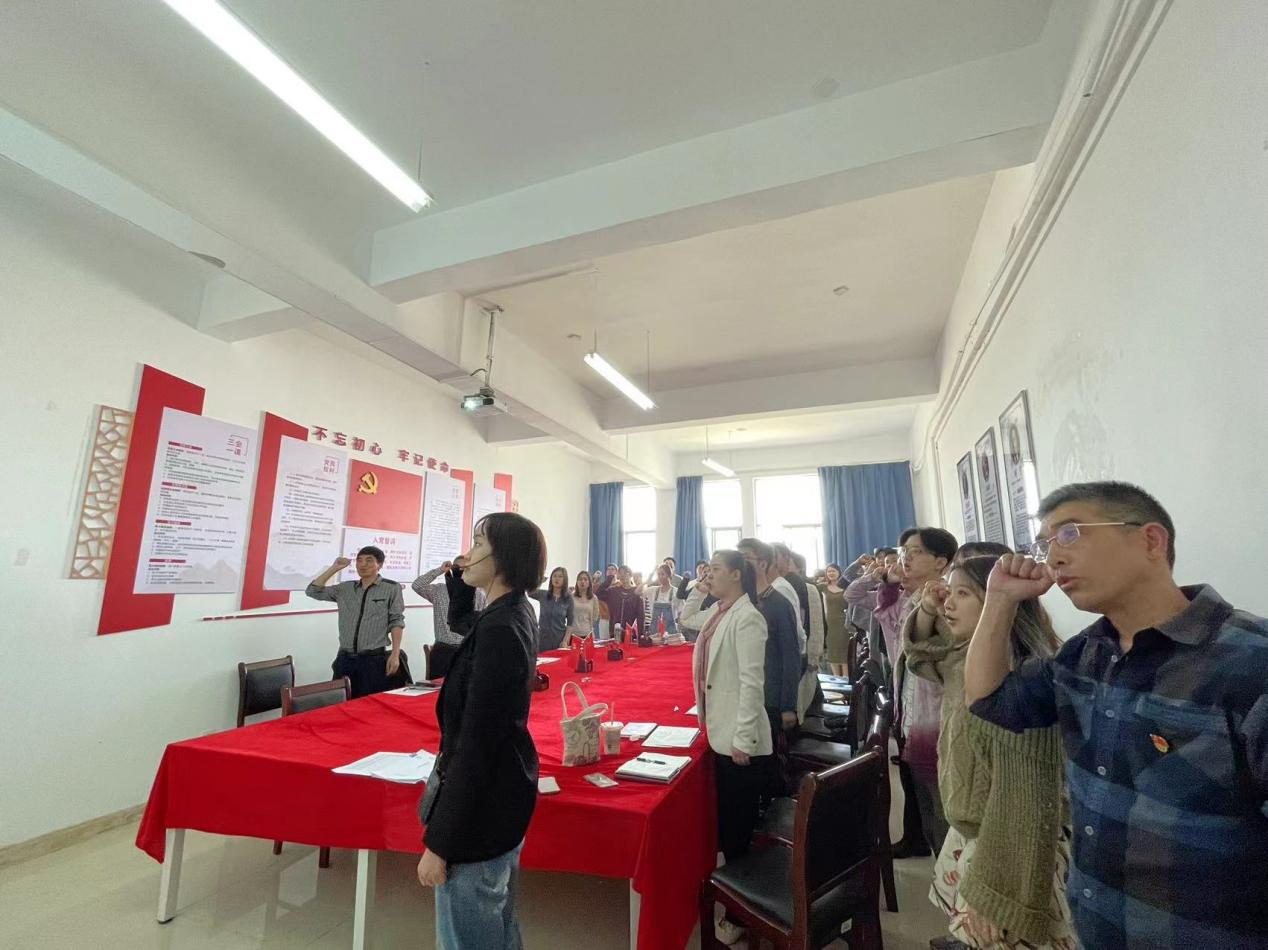 随后,全体教职工进行师德师风宣誓。在思政教师熊嘉瑶的带领下,老师们高举右拳,庄严宣誓:“我是光荣的人民教师,我庄严宣誓: 忠于人民的教育事业,履行教师的神圣职责。爱国守法、以德育人;爱岗敬业、关爱学生;刻苦钻研,严谨笃学;勇于创新 奋发进取...”铮铮誓言表达了beat365教师对教书育人的执着追求。
