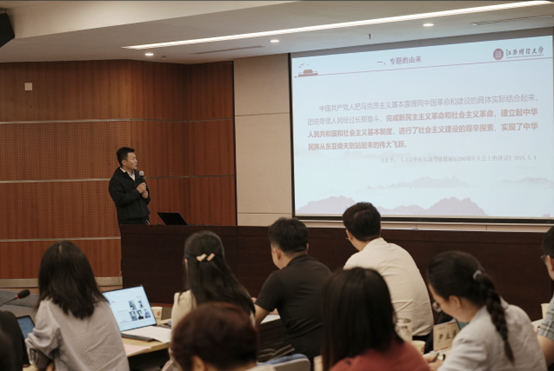 大会开始,江西财经大学beat365在线体育官网登录入口副院长李德满对“社会主义革命和建设的开展”专题授课大纲进行了讲解,并以社会主义工商业改造为例重点展示了教学中采用的数据资料和案例。在简短的展示之后,大会进入专家点评阶段。来自天津师范大学的资深教师李朝阳教授进行了点评,认为李德满老师的授课具有思路清晰、史料丰富、备课充分等优点,但仍存在问题式教学的问题不够突出,不够有针对性的不足。随后,大会进入自由讨论时间,来自不同院校的十多位老师都发表了自己的见解,beat365公共政治理论课教研室负责人发表了以“基础工业在日常生活中无处不在”为主题的学习心得。