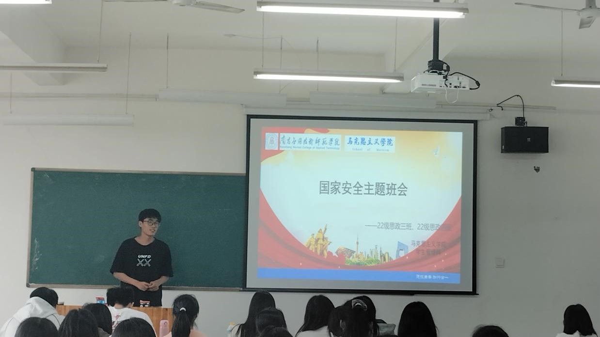 本次活动各班围绕“宣传全民国家安全教育日”“树立国家安全意识”“保守国家秘密法”“安全知识普及”等内容,结合校园安全、人身安全等规章制度进行拓展延伸。通过辅导员、班干发言交流、视频观看、专项答题等形式开展国家安全教育的宣传和学习。活动上对“全民国家安全教育日”进行了介绍,对有关违反国家安全法律的案例进行了讲解,使同学们意识到,国家安全教育是每个公民的“必修课”,是保障国家政治、经济、文化稳定发展不容忽视、不可或缺的重要基础和条件,国家安全就在身边,每个人都是国家安全的一道防线。