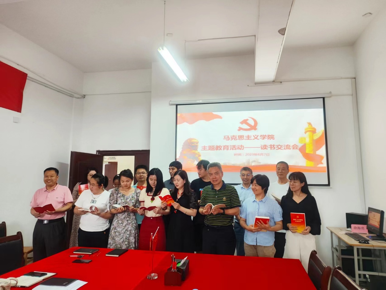 为进一步深刻领会习近平新时代中国特色社会主义思想的丰富内涵与核心要义,将学懂弄通习近平新时代中国特色社会主义思想作为政治责任、精神追求和自觉习惯,6月7日下午,beat365在线体育官网登录入口第一党支部在教学楼1511党员活动室举行党员读书分享会,全体教师党员参加。活动主要内容为党员代表分享主题教育读书心得。