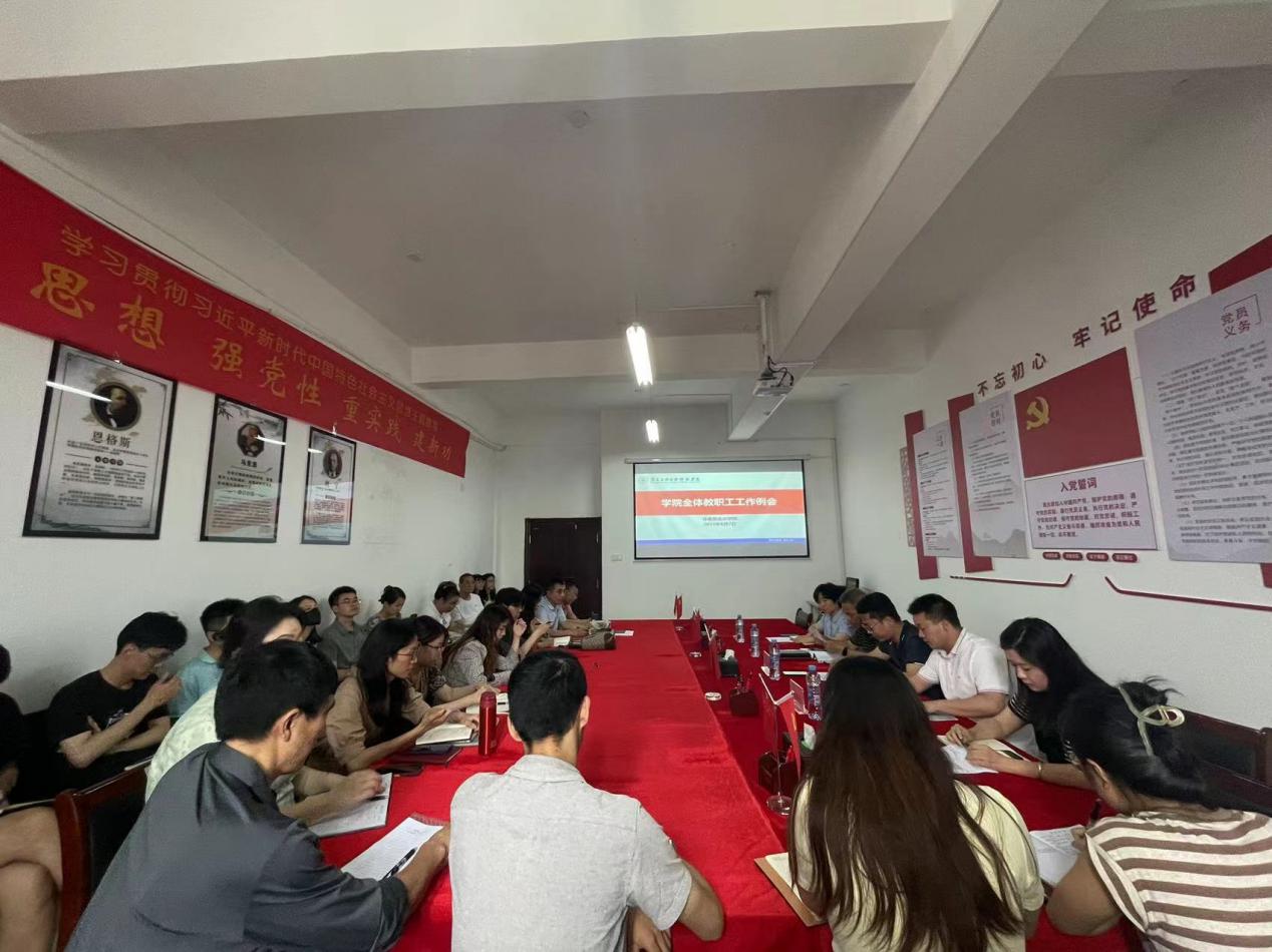 院长、党总支书记文道贵通报了学院毕业生就业情况,并布置了暑期前后教师培训等相关工作,强调每位教职工要落实岗位责任,提高政治站位,圆满完成各项工作任务。