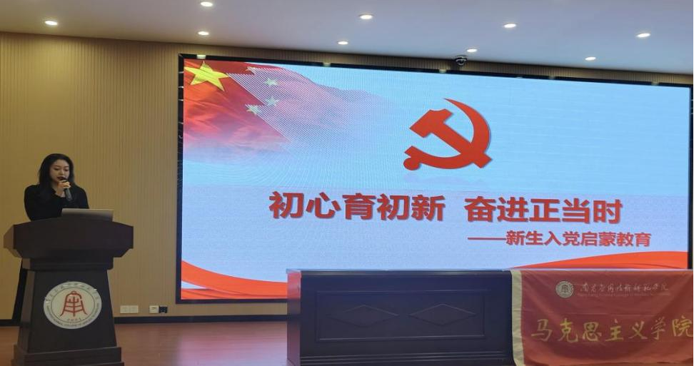 会议的最后一项议程由党政办吴昱杉发言。她给新生做入党启蒙教育并赠与新生“我的生命忠于党,我的信仰万丈光芒”的箴言,她讲到入党首先端正入党动机,并为新生讲解入党具体程序、与申请入党所需条件。