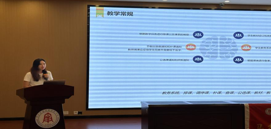 会议的第二项议程是教务科付佳慧发言。在会上,她从五个方面给同学们讲到beat365在线体育官网登录入口教务管理制度,一是课堂十要规范、二是教学常规、三是学籍管理、四是考试与竞赛和毕业管理。她表示马院教务科将会进一步努力提高beat365教学质量,为学生打造更好的学习服务。