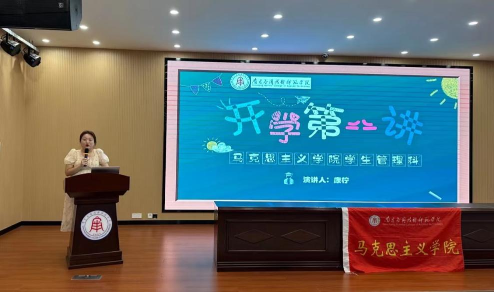 会议的第三项议程是学生科康柠发言。她向全体新生全面介绍了学生管理手册、资助政策、学生宿舍管理等情况,还鼓励大家制定新学期学习计划,在青春赛道上奋力奔跑,争取跑出当代青年的最好成绩。