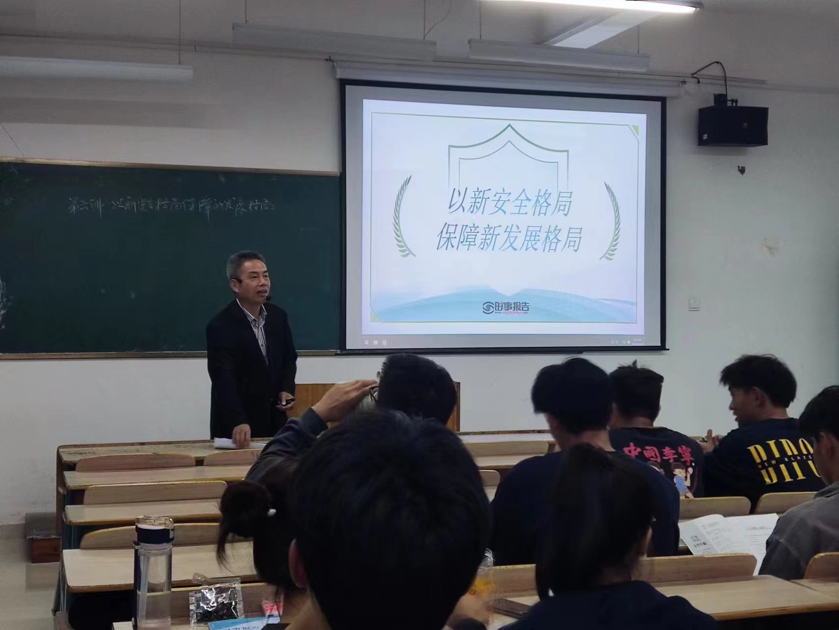 文院长以“新安全格局保障新发展格局”为主题,为2023级社会体育专科1、2班的学生讲授了一节生动的“形势与政策”课。文院长重点向学生讲授了国家安全教育的重要地位,并从坚持总体国家安全观、开创国家安全工作新局面等内容展开讲解,介绍了习近平总书记关于总体国家安全观的重要论述,并引导学生讨论个人对于国家安全重大问题的认识与看法。文院长还对当前国际环境中的不安全因素进行了重要解读,强调国家安全是国家生存发展和人民安居乐业的基本前提。