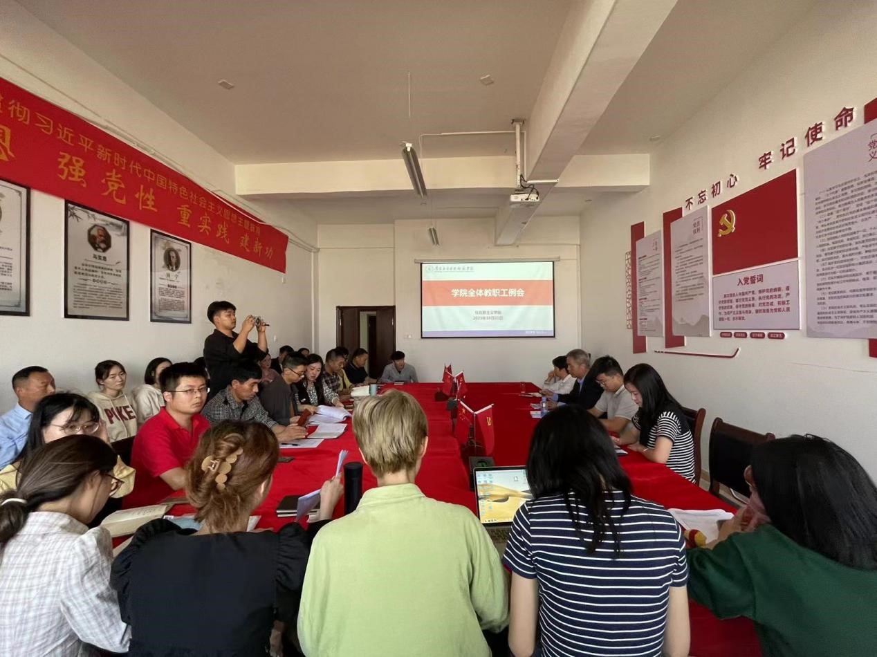 10月31日下午,学院在1511会议室召开全体教职工工作例会,院长文道贵、院党总支书记张欣康、院党总支副书记李婷、副院长张丹及学院全体教职工参加会议,会议由院长文道贵主持。