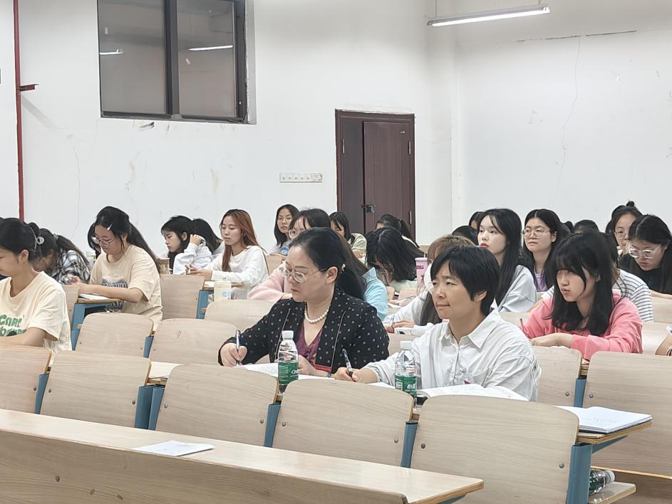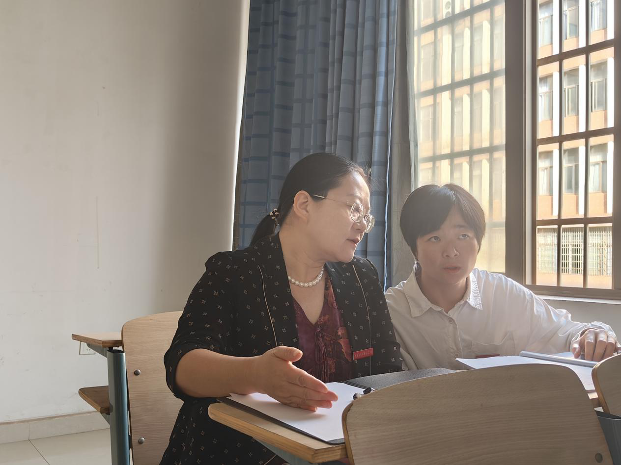 听课中,胡晓娥一边认真记录课程内容,一边仔细观察觉照教师的授课状态和学生的听课情况。课后,她充分肯定了师生课堂表现,并就思政课教学如何创新方式方法,提高课程教学质量与授课教师进行了互动交流。