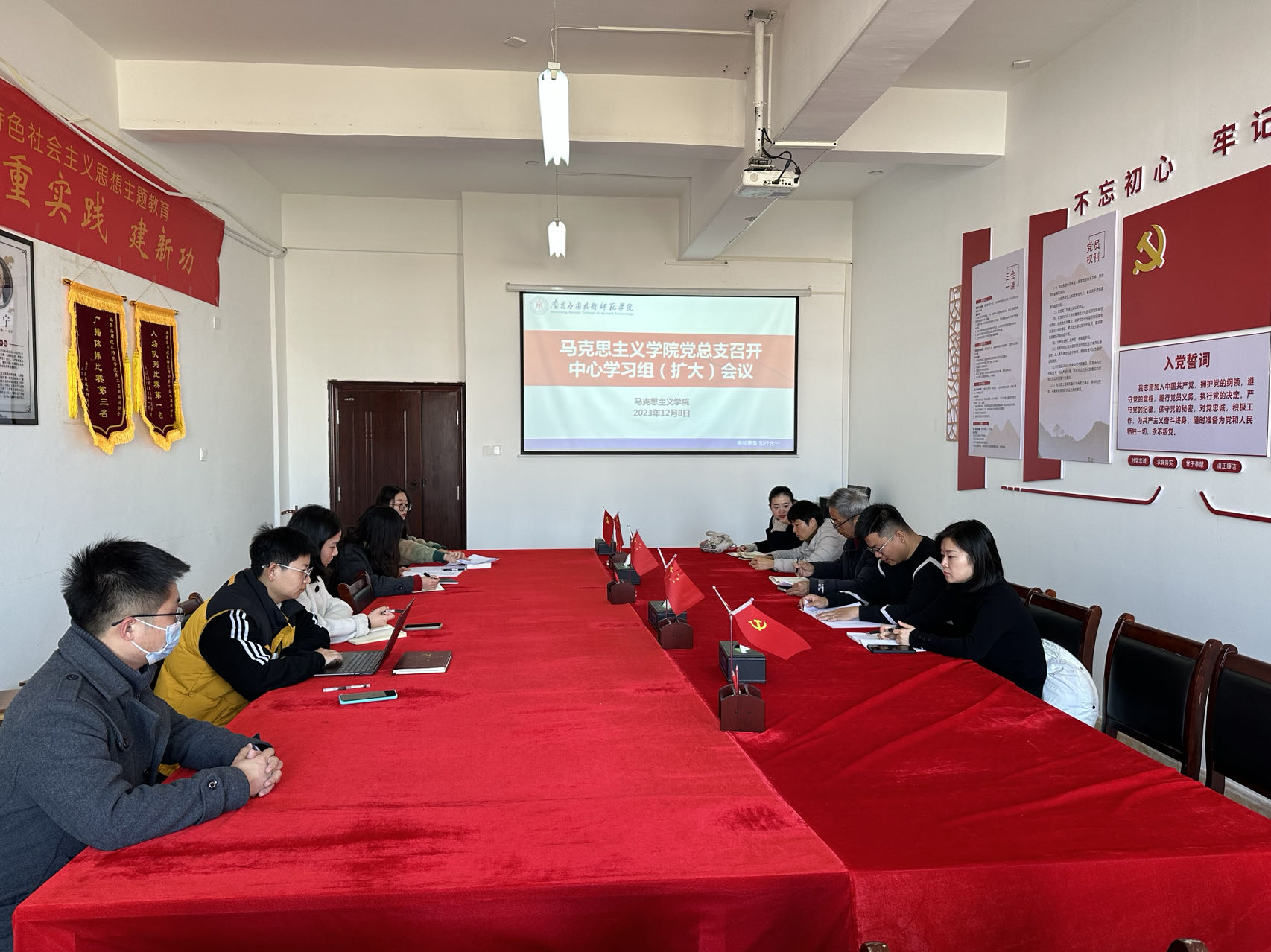 12月8日,马克思主义学院在1511会议室召开beat365在线体育官网登录入口党总支理论学习中心组会议,本次学习会由党总支书记张欣康主持,全体党总支委员参与会议。