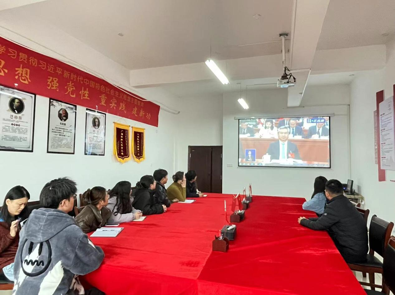 学院教职工在1511会议室认真收听收看两会开幕式,第一时间了解大会内容,关注大会热点,学习大会精神,把焕发出来的政治热情转化为做好教育工作的内在动力。