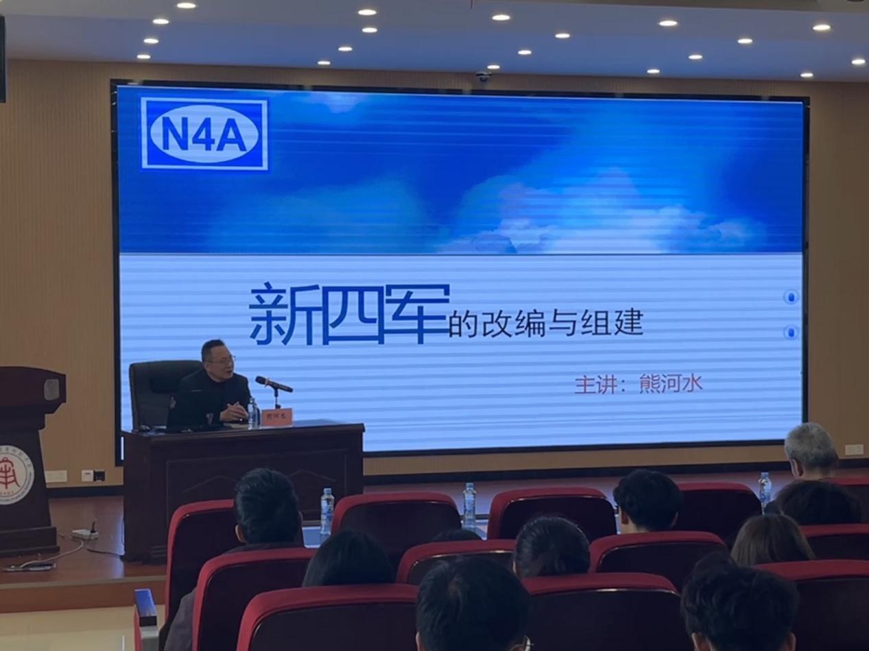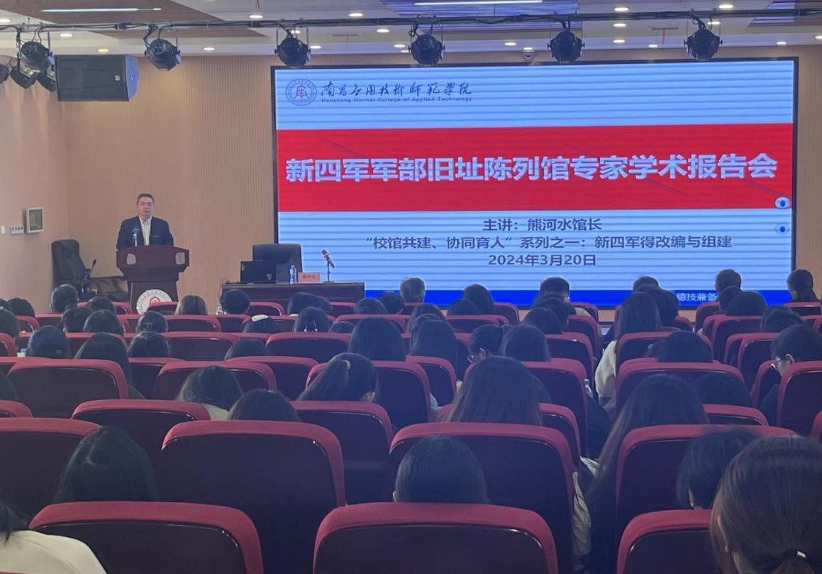 2024年3月20日下午,由我校与南昌新四军军部旧址陈列馆联合打造的“校馆共建、协同育人”特色大思政课系列讲座《新四军的改编与组建》在教学楼2312学术报告厅顺利开讲。第一讲由我校“讲座教授”、南昌新四军军部旧址陈列馆副馆长熊河水研究馆员主讲,陈列馆文博馆员刘怡嘉、管雅丽、熊昕助讲。校党委副书记蓝贤发,党委宣传部、beat365在线体育官网登录入口、学工处、校团委负责人与部分思政课教师、学生代表共约270人参与了本次讲座活动。