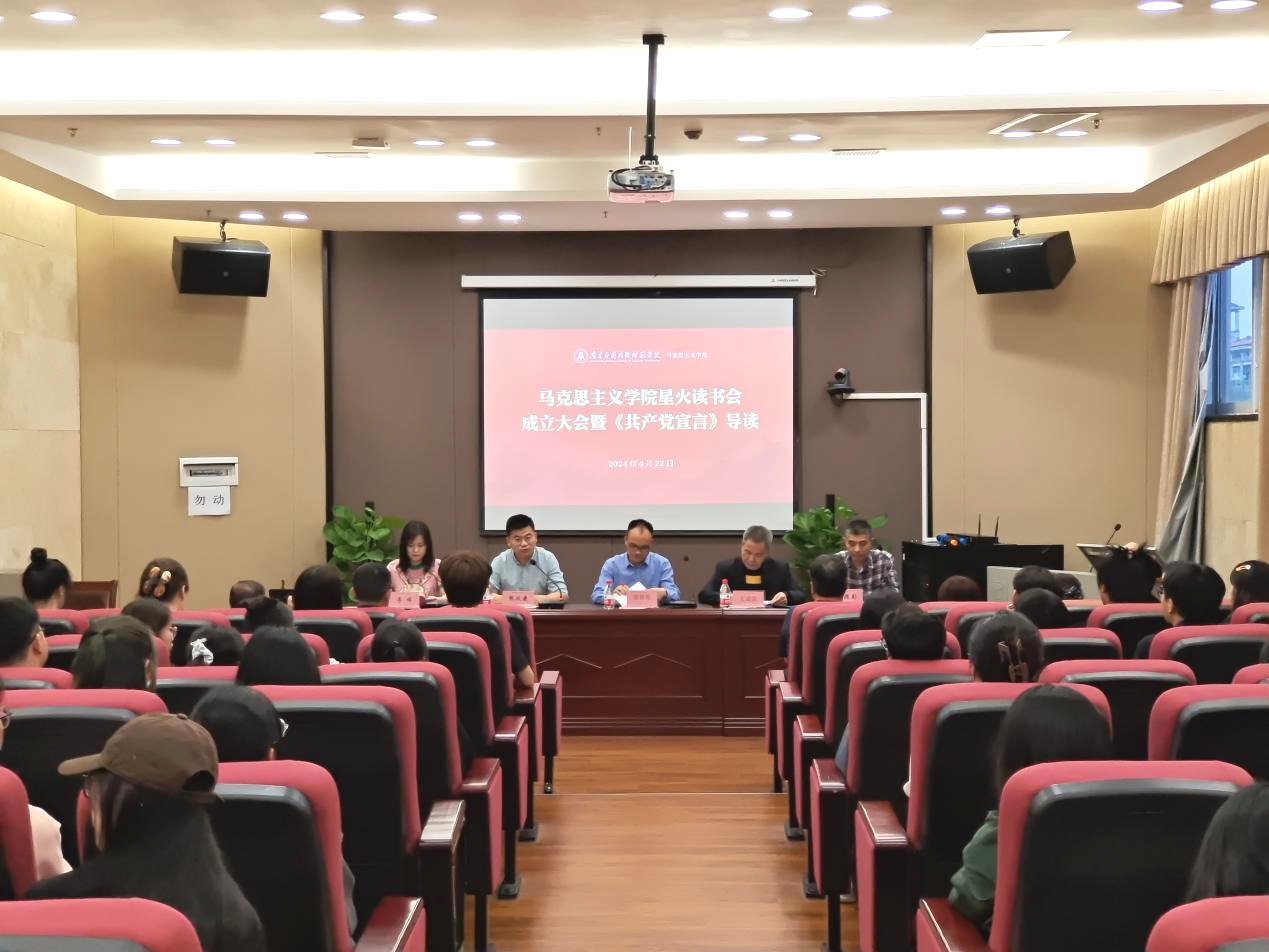 为响应国家关于全民阅读、终身学习的号召,引导广大青年在读书中感悟书籍智慧,汲取奋进力量。4月22日,在世界读书日即将来临之际,马克思主义学院“星火”读书会成立大会暨《共产党宣言》导读会议在行政中心第二会议室举行。校党委副书记蓝贤发、beat365在线体育官网登录入口院长文道贵、副院长刘德彰、党总支副书记李婷及出席会议。“星火”读书会指导老师、“星火”宣讲团成员、“星火”读书会成员、beat365在线体育官网登录入口团总支学生会全体成员参加会议,会议由党总支书记张欣康主持。