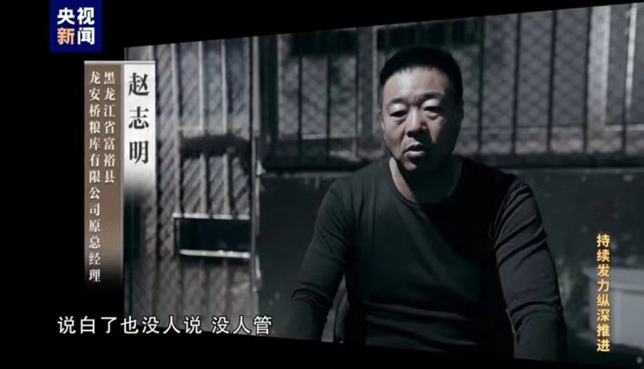 赵志明曾是黑龙江省齐齐哈尔市富裕县龙安桥粮库总经理,经查,他贪污粮库公款2400万余元,挪用公款1400万余元,2023年3月被判处有期徒刑14年。龙安桥粮库是在2015年由5家国有粮库改革重组的,富裕县政府持股51%、民营企业鼎仓公司持股49%。赵志明原本是鼎仓公司的老板,在这次改制中当上了龙安桥粮库总经理。