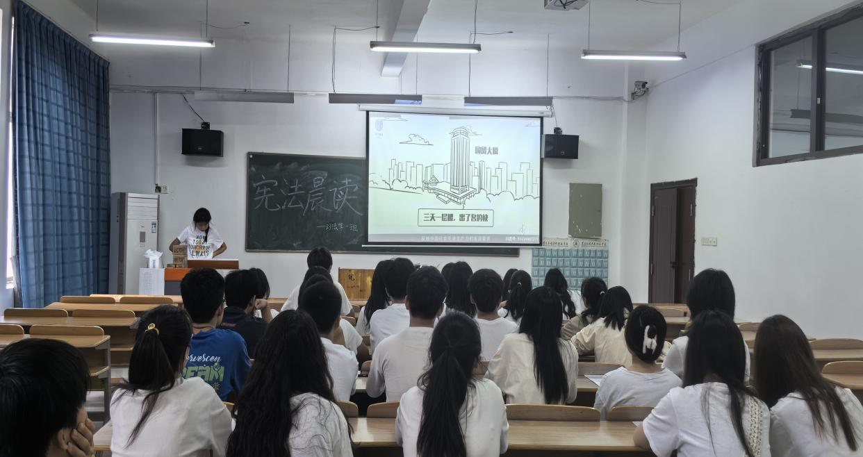 为了深入开展宪法法律学习宣传教育,推动学生宪法学习宣传教育走深走实,引导学生自觉成为宪法的忠实崇尚者、自觉遵守者、坚定捍卫者。beat365在线体育官网登录入口23级法学1班于2024年5月21日上午9:00在2501教室组织开展了“晨光熹微,法韵悠扬”宪法晨读活动,此次活动由23级法学1班全体同学及老师共同参与。