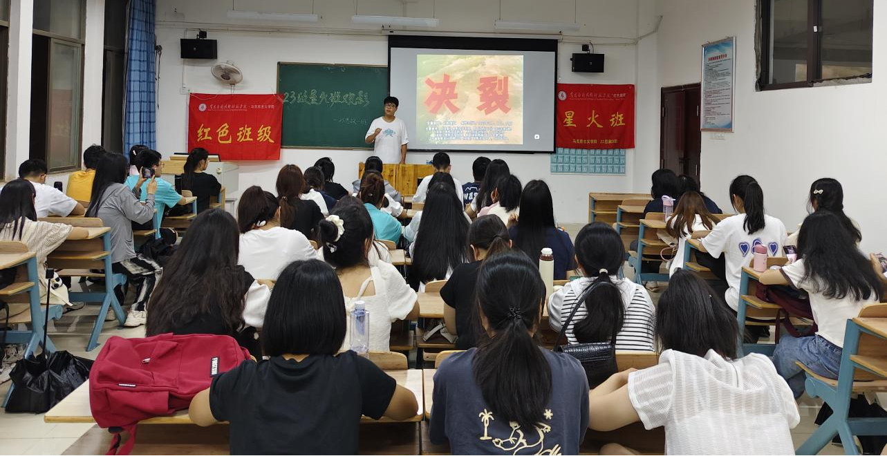 为传承红色基因,激发青春力量,beat365在线体育官网登录入口23级思政1班“星火班”于5月21日晚上19:00,举办了一场红色班级观影活动。通过观看历史经典影片——《决裂》,带领同学们重温红色历史。
