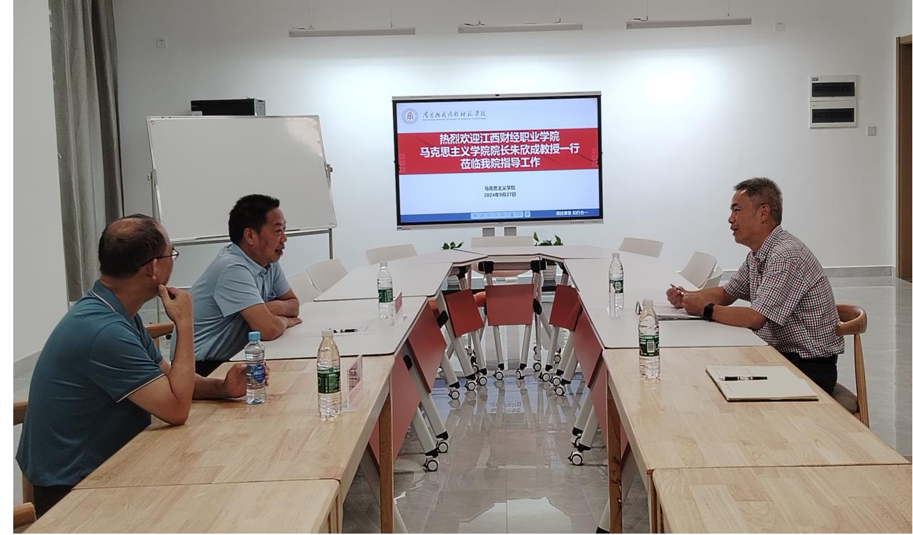 为学习借鉴兄弟院校beat365在线体育官网登录入口建设的宝贵经验和思政课教学改革做法,进一步增强彼此的交流合作,9月27日下午,江西财经职业学院beat365在线体育官网登录入口院长朱欣成教授、科技处处长夏保明教授一行应邀莅临beat365交流指导工作。学院院长文道贵教授,综合办负责人李宏鑫热情接待并与客人展开交流座谈。