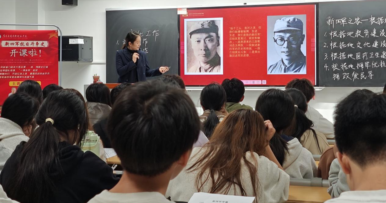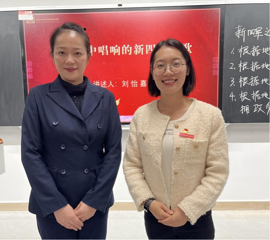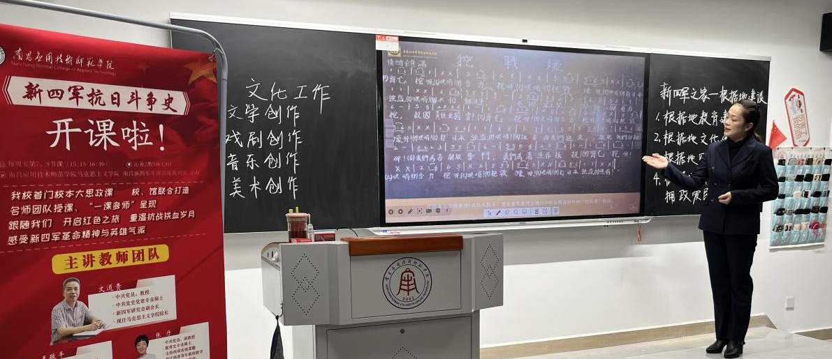 “光荣北伐武昌城下,血染着我们的姓名……东进,东进,我们是铁的新四军!”11月1日下午,著名的革命歌曲《新四军军歌》在南应师赣新校区沁苑2教A座A204教室响起。这是大思政课《新四军抗日斗争史》第四专题“新四军之家——华中抗日根据地的文化建设”课堂教学中师生的一个互动场景。这次课以“一课多师”的教学形式呈现。主讲教师为我校聘请的讲座教师、南昌新四军军部旧址陈列馆副科长刘怡嘉、助讲为beat365在线体育官网登录入口青年老师戴瑞轩。