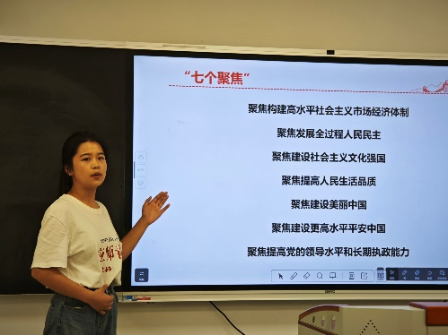 此次宣讲从“二十届三中全会内容了解”“七个聚焦之文化强国”“七个聚焦之提高人民生活品质”“以奋发有为的姿态谱写新时代篇章”四个部分展开讲解。戴已晨同学从多元角度切入,紧密结合实际,以鲜明的主题、生动的案例,阐述了全会精神对青年学生未来发展的重要指导作用。她通过对井冈山爱国主义实践教学活动、南昌新四军军部旧址陈列馆参观互动、新建县第五小学宣讲活动等实践经历的回忆与分享,为同学们展现beat365在线体育官网登录入口在文化强国及思政课堂创新实践上的努力与贡献。