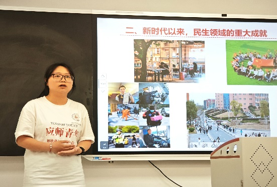 魏蕾同学则从同学们关注的就业问题入手,联系党的二十届三中全会关于新型就业形态及意识的倡导,鼓励同学们形成先就业再择业的意识,她对西部计划、三支一扶等政策的介绍,让同学们了解了更多就业渠道,同时鼓励同学们积极实践活动,珍惜大学时光,提升自我能力及专业素质,为投身社会打下坚实的基础。