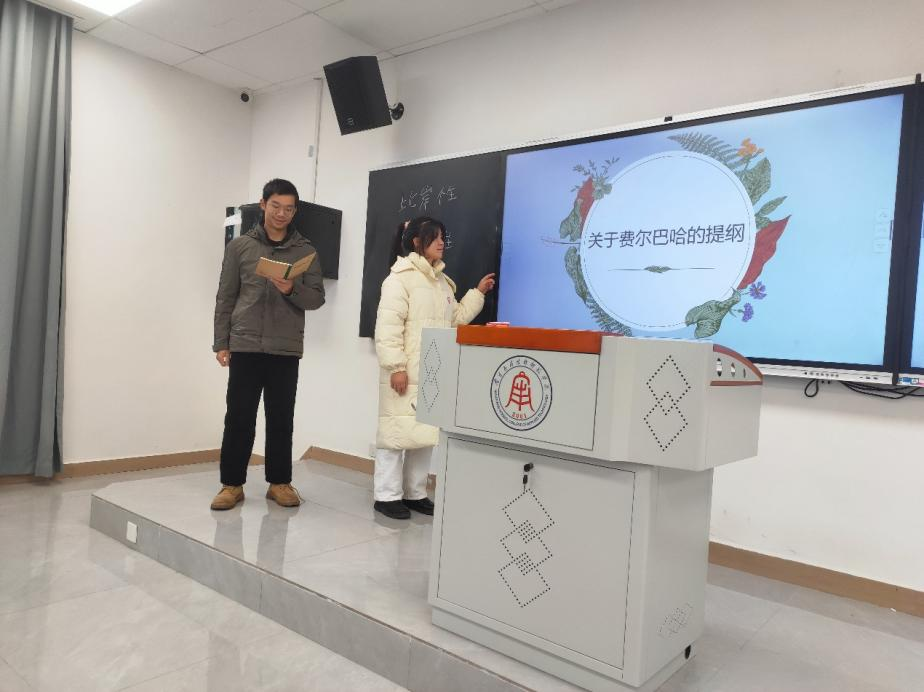 在本次课堂展示实践中,同学们的表现各具特色。有的同学对经典著作文本理解较为深入,触及到了难以理解的哲学概念;有的同学则讲得幽默风趣,带动同学们在活跃的课堂气氛中学习经典文本。难能可贵的是,同学们在课后阅读中不仅对马克思的哲学理论进行了深入的学习,还了解了马克思哲学的重要背景,即费尔巴哈的人本学思想。