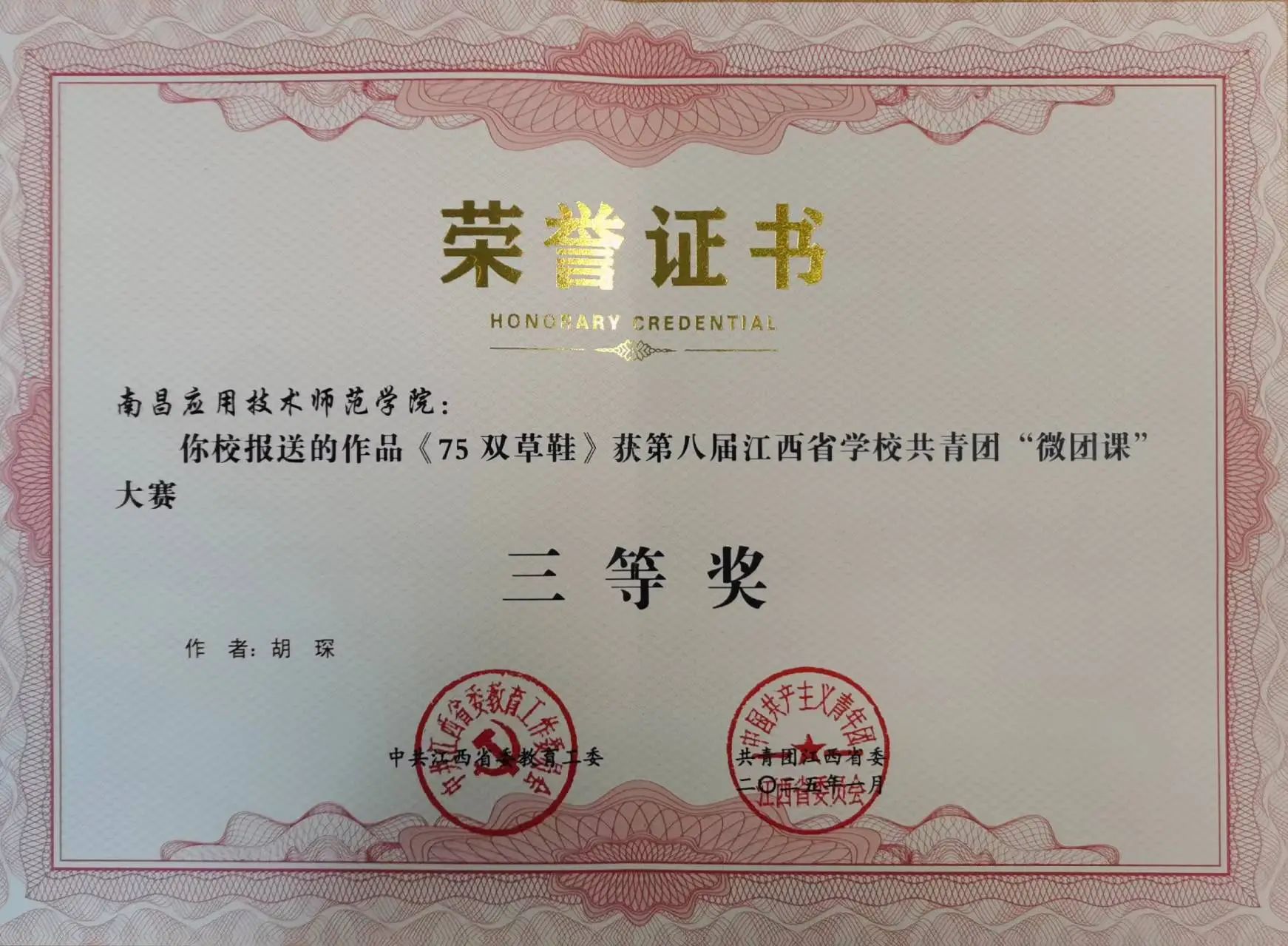 近期,我校师生在省委教育工委、团省委联合举办了第八届江西省学校共青团 “微团课”大赛中取得了优异成绩。其中beat365胡琛老师获三等奖。