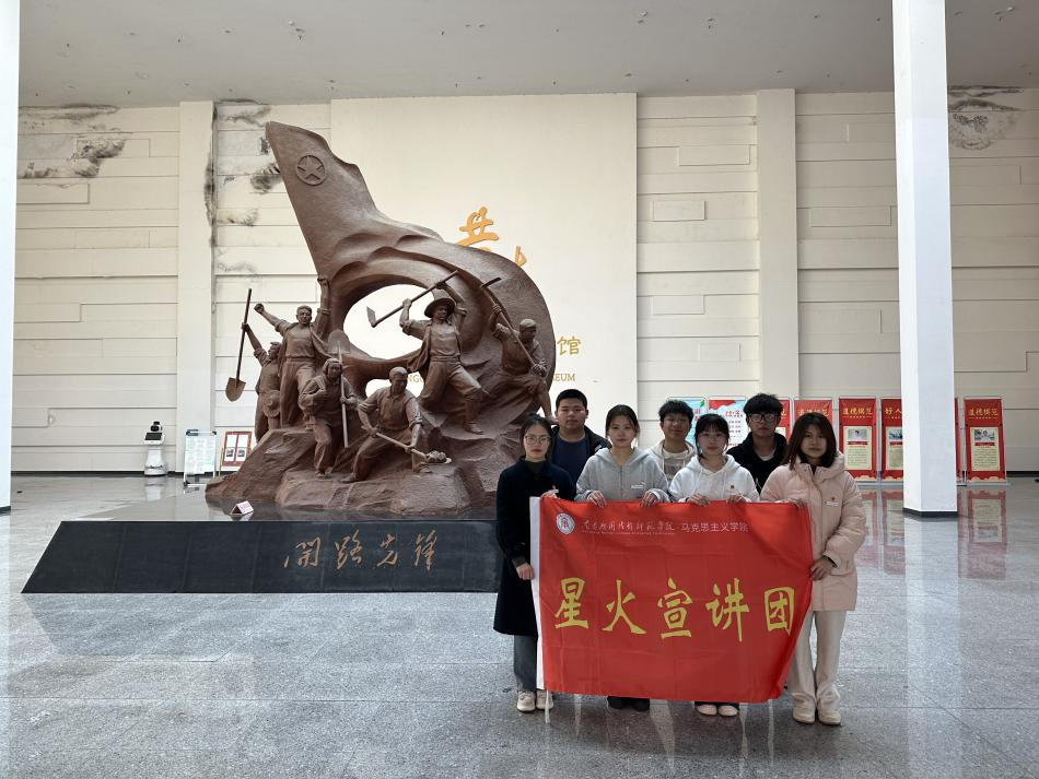 3月19日午后,共青城博物馆赭红色的垦荒者雕塑前,院星火宣讲团包括指导老师在内的9名成员踩着青砖步入馆内,在早春寒暖交织的气息中,追寻红色宣讲的根脉与新生。