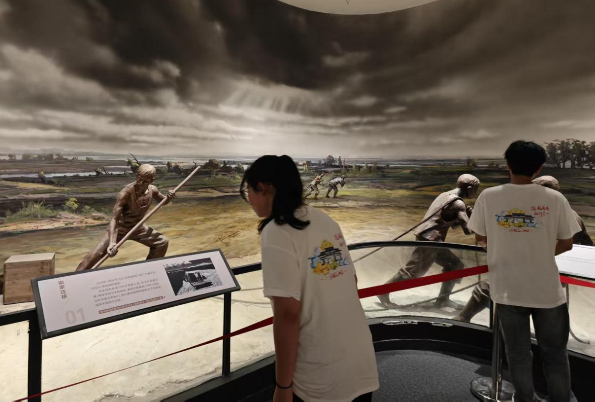 经过半小时车程,队员们抵达共青城市潘家湾研学营地。稍作休整,实践队随即前往共青城市博物馆参观学习。步入共青社展厅,垦荒队员挥汗如雨、手持锄头艰苦奋斗的群像雕塑扑面而来,无声诉说着“向荒山要粮”的豪迈誓言。一旁静立的立钟仿佛仍在激荡,发出跨越时空的青春回响,将历史的温度深深烙印心间。队员们穿越各个展厅,在琳琅的红色文物间驻足凝望,追寻历史印记的根脉轨迹,感悟其时代新生的蓬勃力量。