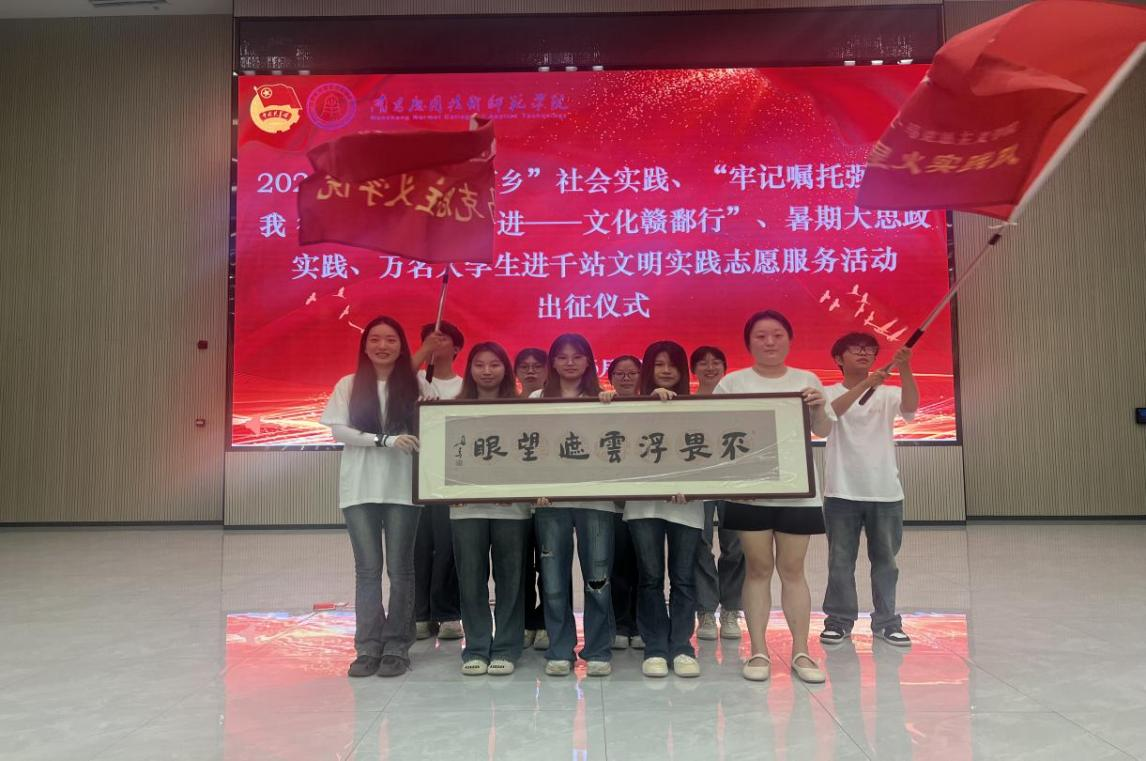 为深入学习贯彻习近平新时代中国特色社会主义思想,引导和帮助广大青年学生在实践中受教育、长才干、作贡献,进一步激发青年学子的社会责任感和使命感,2025年6月23日,beat365在线体育官网登录入口beat365在线体育官网登录入口星火社会实践队前往图书馆报告厅参加了2025年暑期“三下乡”社会实践、“牢记嘱托强国有我 行走赣鄱感恩奋进——文化赣鄱行”、暑期大思政实践、万名大学生进千站文明实践志愿服务活动出征仪式。