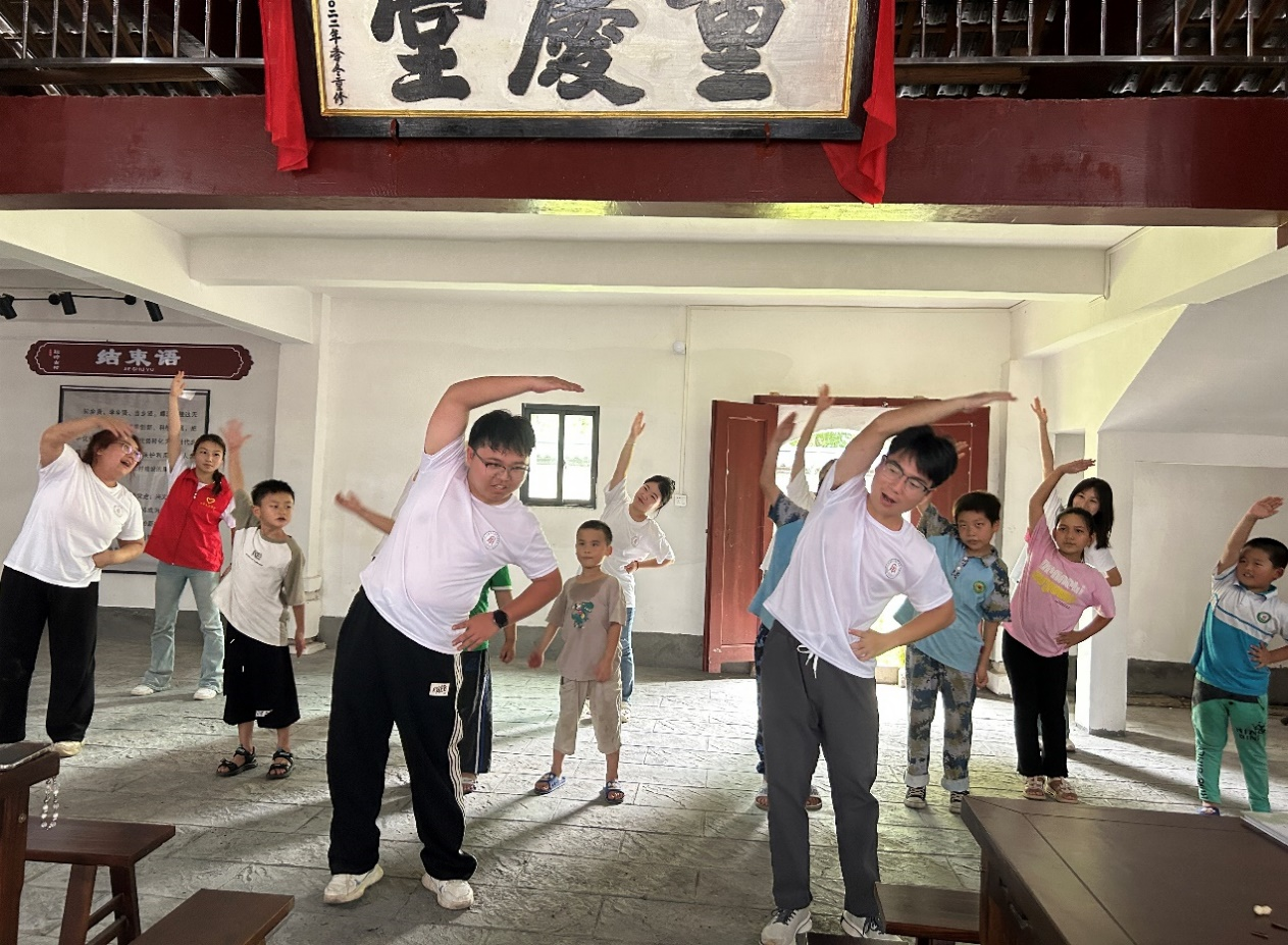 下午, “星火”队来到爵誉村幸福茶馆进行“防溺水”、“乡村振兴”主题宣讲“星火”队队员方璇为村民介绍了防溺水相关知识,讲解了如何在遇到危险时自救和互救。同时通过问答游戏方式,让小朋友们在轻松愉快的氛围中学习和掌握防溺水的知识。还教授了游泳前的热身操,小朋友们纷纷跟随队员们的指导,认真学习和模仿每一个动作,掌握了游泳前的热身操和游泳时的注意事项。