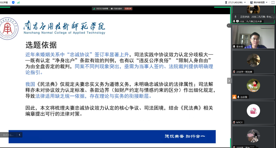 为切实做好2026届毕业论文指导工作,10月14日,beat365在线体育官网登录入口举行了2026届毕业生毕业论文线上开题报告会。法学、思想政治教育两个专业共计341名毕业生进行了开题报告,全体论文指导教师听取了报告。