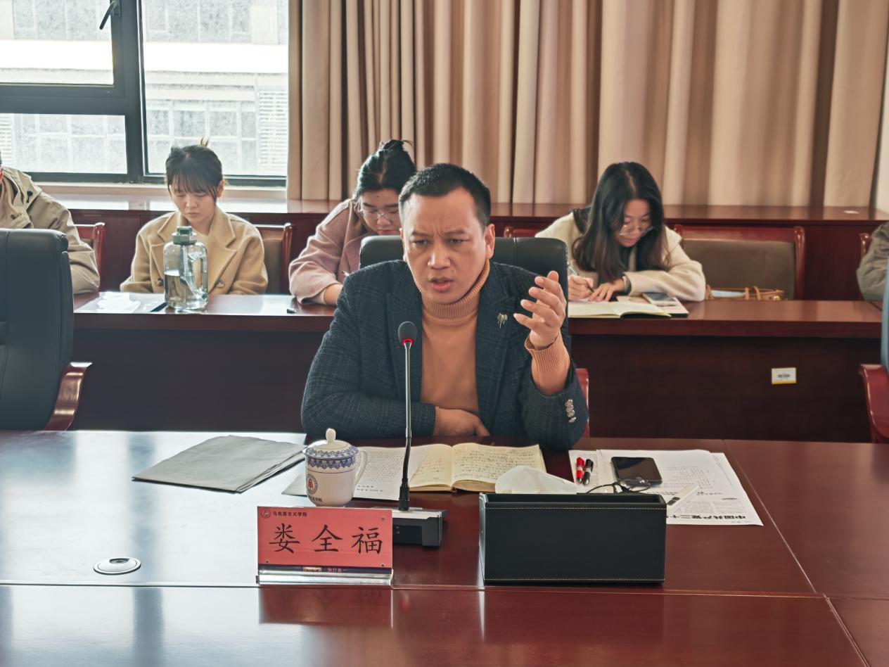 结合学院工作实际,副校长娄全福系统解读了全会公报核心内容。他重点阐释“十五五”时期经济社会发展的指导思想,强调要全面贯彻习近平新时代中国特色社会主义思想,围绕全面建成社会主义现代化强国目标,以中国式现代化全面推进中华民族伟大复兴,坚持稳中求进工作总基调,推动经济社会高质量发展。针对公报提出的“六个坚持”发展原则,他逐一剖析核心要义,将党的创新理论与学院专业特色有机融合,使学生们在学习理论知识的同时,增强了专业认同感和使命担当。