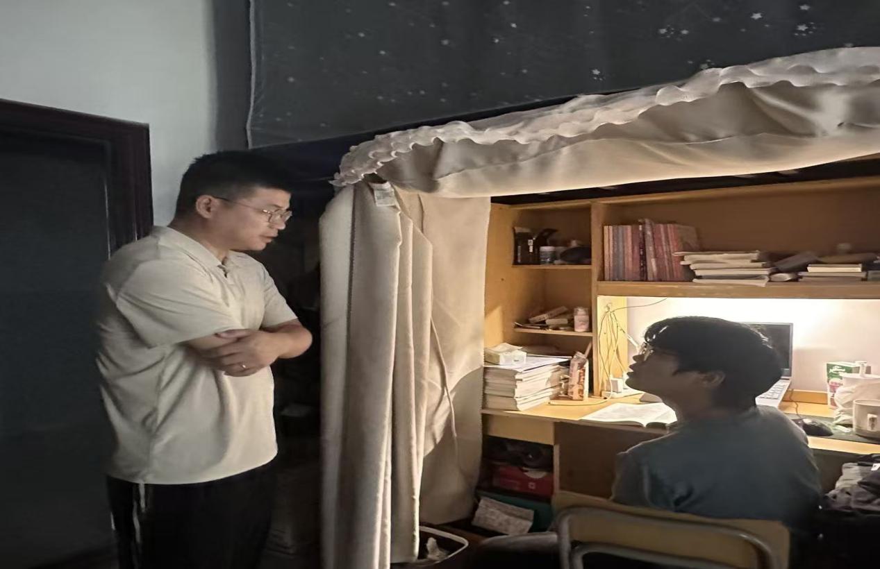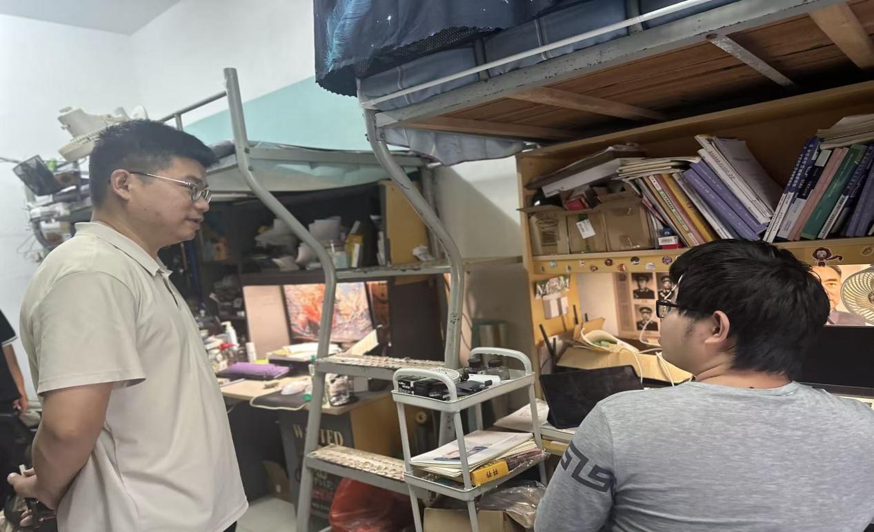 走访中,学院领导和辅导员们向毕业生详细询问备考的情况、求职进展及就业意向。"最近复习得怎么样?有没有需要学院提供的指导?""同学们对岗位薪资、发展空间有期待吗?"张欣康书记逐一关切询问,认真记录学生的需求与困惑,并结合自身经验为学生分析就业形势,鼓励大家保持积极心态,理性选择就业方向。雷欢欢副书记则重点关注毕业生的生活状态,查看宿舍环境,询问饮食、休息情况:"天气炎热,宿舍空调有没有问题?复习累了要注意劳逸结合,有困难随时找学院。"
