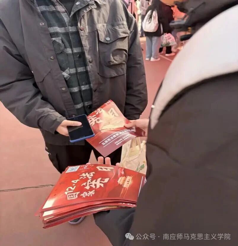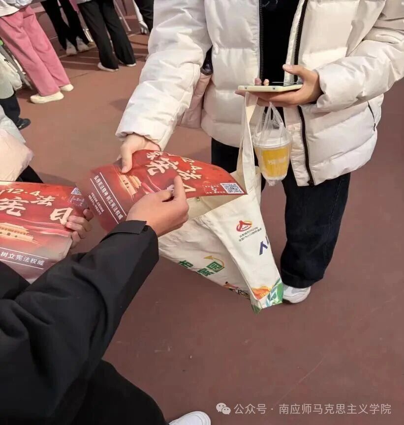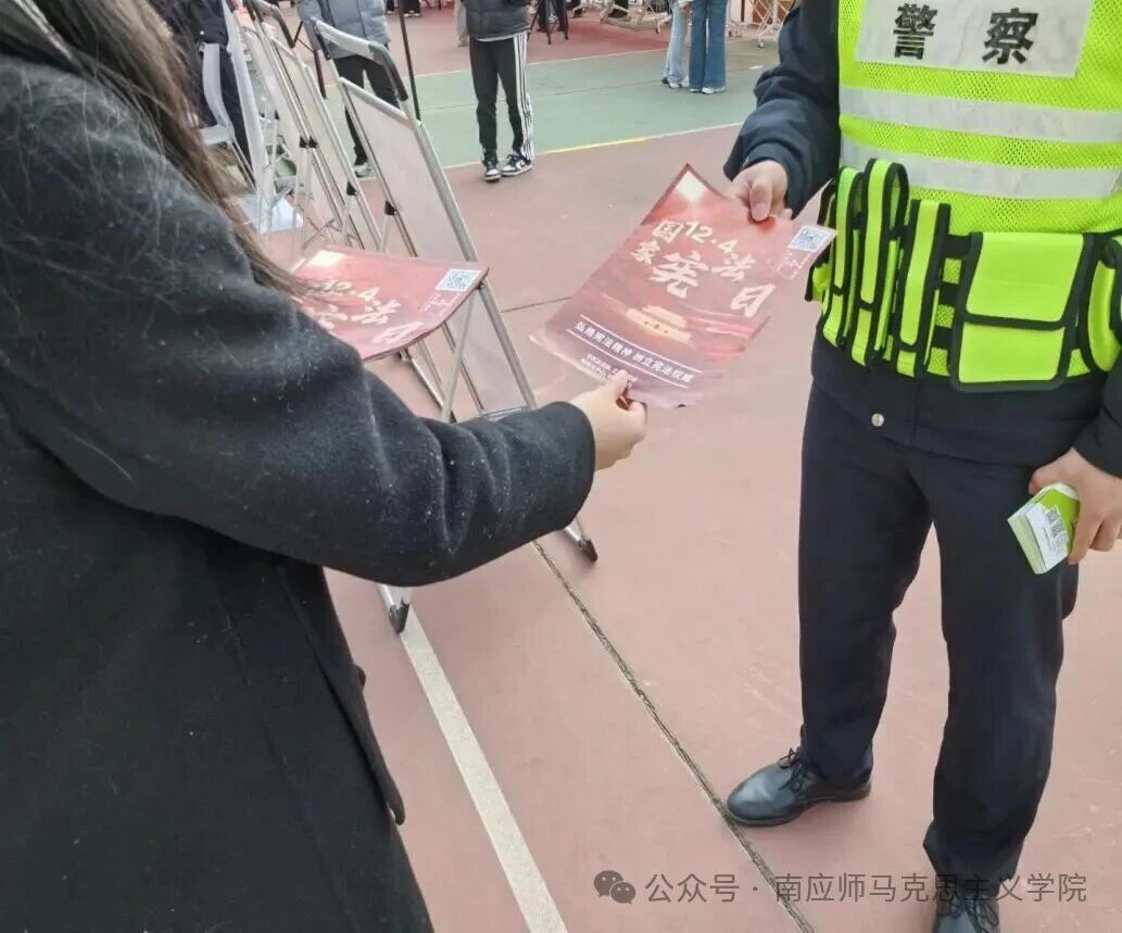 主会场活动结束后,我校队伍投身户外宣传。学子们通过发放宪法宣传单、悬挂横幅、案例解读、互动答疑等形式,向过往师生普及宪法核心内容与民生法律知识,耐心解答疑问,有效延伸了法治宣传的覆盖面与影响力,营造了“人人学宪法、人人守宪法”的浓厚氛围。