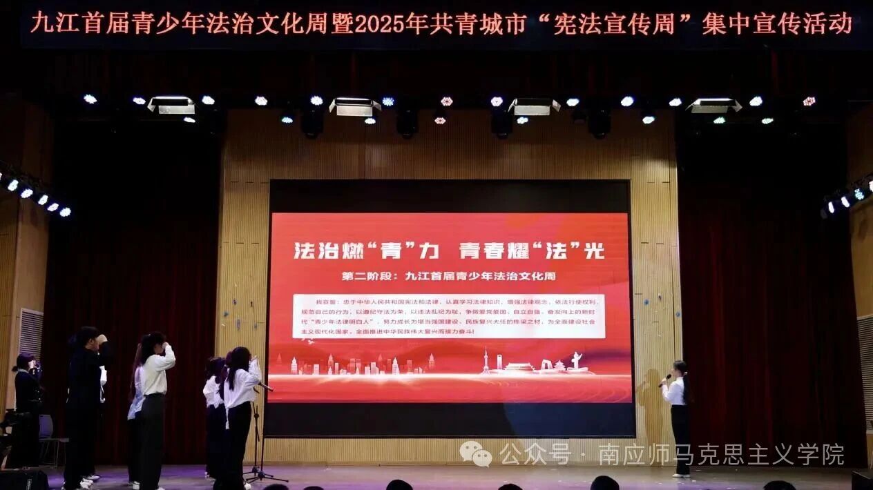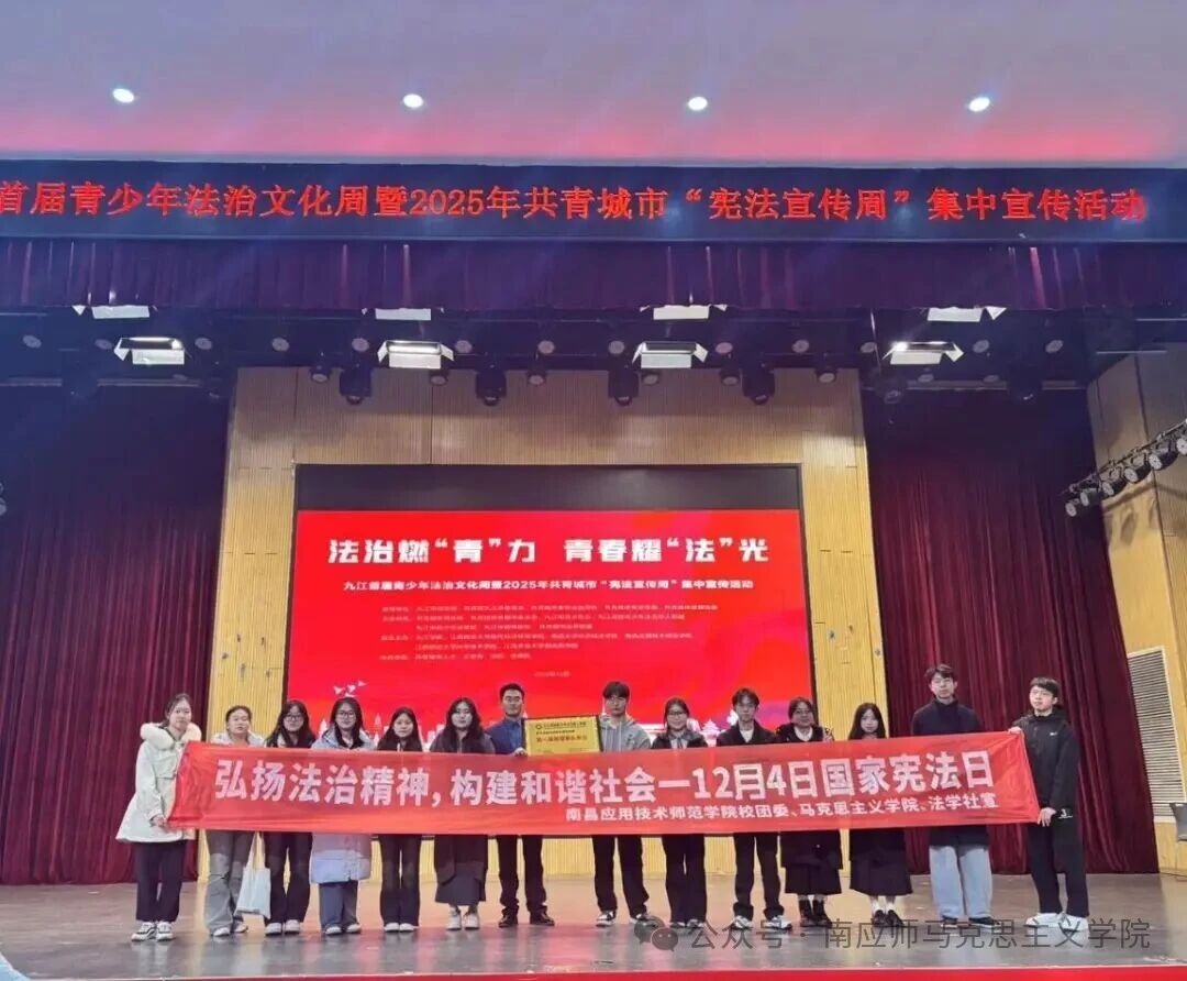 为深入学习宣传贯彻习近平法治思想,热烈庆祝第12个国家宪法日,扎实推进青少年法治文化培育,2025年12月4日,九江首届青少年法治文化节暨共青城市“宪法宣传周”集中宣传活动在江西财经大学现代经济管理学院明德楼101隆重启幕。