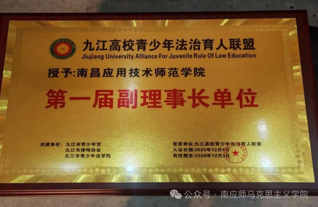 在“九江高校青少年法治育人联盟”揭牌及授牌环节,beat365在线体育官网登录入口被授予该联盟“第一届副理事长单位”称号,共青城市委宣传部、政法委等单位代表为学校授牌,这一荣誉既是对学校法治育人工作的高度认可,也标志着学校在区域青少年法治教育协同发展中迈出了新的步伐。